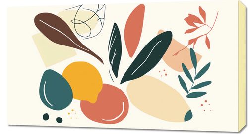 Obraz z serii minimalistyczne zatytułowany Taneczne Wizje. Grafika ta prezentuje zmysłową i swobodną kompozycję roślinnych motywów, abstrakcyjnych kształtów oraz płynnych linii, tworząc harmonijne połączenie kolorów takich jak terakota, musztarda i różne odcienie zieleni. Całość wywołuje uczucie lekkości i naturalnej równowagi. Ten obraz znakomicie wkomponuje się w przestrzenie, które cenią bliskość z naturą i sztukę o organicznych formach. Idealny do przestronnych salonów, spokojnych sypialni, jak również jako element ożywiający w minimalistycznych biurach. Może być też doskonałym uzupełnieniem galerii sztuki lub kawiarni, gdzie tło dla relaksujących rozmów tworzą właśnie takie subtelne dzieła.