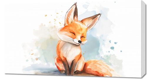 Obraz z serii wnętrza zatytułowany Zadowolony Lisek. Ten uroczy akwarelowy obraz przedstawia uśmiechniętego, zadowolonego lisa, który z zamyśleniem spogląda w dal, otoczony przez delikatne akcenty akwareli. Kolorowe plamy i rozbryzgi tuszu dodają lekkości i ruchu kompozycji, podkreślając beztroski charakter ujęcia. Idealnie nadaje się do przestrzeni pełnych ciepła i radości, takich jak pokoje dziecięce, kreatywne pracownie, czy przytulne kąciki do wypoczynku w domu. Ten obraz z pewnością wprowadzi element radosnego spokoju i pozytywnej energii do każdej przestrzeni.