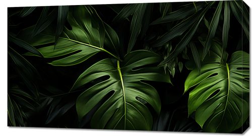 Obraz z serii natura zatytułowany Zielony Szept, przyciąga uwagę swoją głębią i bogactwem odcieni zieleni. Mieniące się liście monstery, połączone z subtelnymi, niemal abstrakcyjnymi formami innych roślin tropikalnych, tworzą kompozycję pełną życia i harmonii. Ta zieleń to synonim spokoju i regeneracji, a każdy detal podkreślony jest przez delikatne światło, które wydobywa tajemniczość i naturalne piękno roślin. Idealnie komponuje się w przestrzeniach współczesnych, które stawiają na ekologiczne i naturalne elementy dekoracyjne, jak również w miejscach publicznych, takich jak hotele, restauracje czy biura, gdzie może stanowić oazę relaksu i natury. Ta praca doskonale wpisuje się w potrzebę bliskości z przyrodą w zatłoczonych, miejskich wnętrzach.