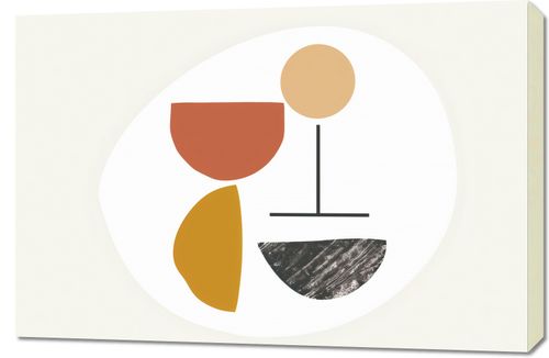 Obraz z serii boho zatytułowany Kompozycja Balans. Obraz oferuje spokojne połączenie abstrakcyjnych kształtów i delikatnych tekstur, które razem tworzą poczucie harmonii i równowagi. Stylizowane półkola i linie w odcieniach czerwieni, żółci i neutralnych barw mogą przywodzić na myśl elementy natury, takie jak kwiaty i słońce, zrównoważone przez surową teksturę przypominającą kamień lub ziemię. To dzieło doskonale nadaje się do przestrzeni, które cenią prostotę i wyciszenie, takie jak minimalistyczne salony, jasne gabinety, czy miejsca odpoczynku. Może wprowadzić element kontemplacyjny do przestrzeni, jednocześnie zachowując estetyczną klarowność i lekkość.