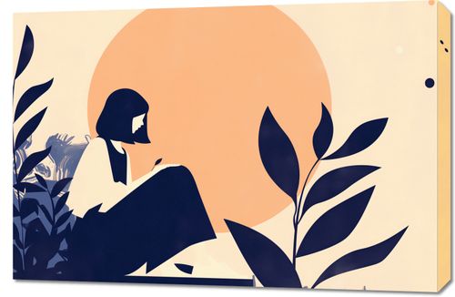 Obraz z serii minimalistyczne zatytułowany Kontemplacja. Ta delikatna grafika przedstawia sylwetkę kobiety w stanie kontemplacji na tle dużego, ciepłego, pomarańczowego słońca. Sylwetka jest otoczona przez proste, ale eleganckie czarne rośliny, co dodaje kompozycji spokojnego nastroju.Ten obraz jest idealny dla przestrzeni, które pragną wprowadzić momenty spokoju i refleksji. Będzie wspaniałym dodatkiem do sypialni, czytelni, kącików medytacyjnych czy nawet przestrzeni terapeutycznych.