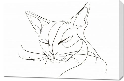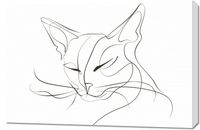 Plakat z serii wnętrza zatytułowany Linijny Kot. Prezentuje minimalistyczny, jednoliniowy rysunek kota. Sylwetka zwierzęcia została zredukowana do kilku płynnych linii, które z gracją oddają kształt głowy, uszu i rysy twarzy, w tym oczy i nos. Styl ten jest znany z tego, że w elegancki sposób uchwyci esencję swojego przedmiotu przy minimalnym użyciu detali. Tło obrazu jest czyste i jasne, co pozwala zarysom kota stać się dominującym elementem. Ten rodzaj sztuki idealnie nadawałby się do nowoczesnego wnętrza, które ceni sobie elegancję i prostotę, i może przyciągać wzrok jako subtelny, ale wyrafinowany element dekoracyjny.