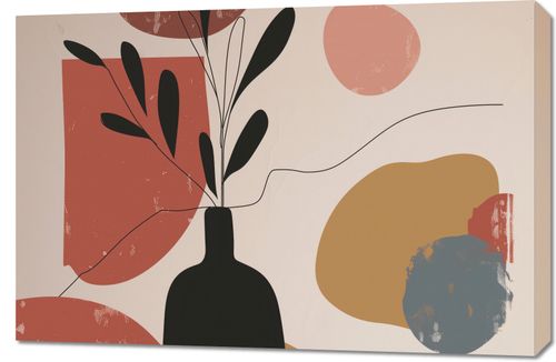 Obraz z serii minimalistyczne zatytułowany Nowoczesna Odwaga. Grafika ta charakteryzuje się odważnym połączeniem organicznych form i geometrycznych kształtów, wykorzystując kontrastującą paletę czerwieni, czerni oraz neutralnych beżów. Wazon z abstrakcyjnymi roślinami stanowi centralny punkt kompozycji, z eleganckimi liniami dodającymi dynamiki całości. Idealnie sprawdzi się w przestrzeniach, które odważnie łączą klasykę z nowoczesnością – zarówno w domowych salonach, jak i w przestrzeniach komercyjnych, takich jak restauracje czy hotele. Szczególnie dobrze będzie się prezentować na jednobarwnych ścianach, gdzie jego intensywne kolory i ciekawe formy mogą w pełni zaistnieć, stanowiąc silny element dekoracyjny i rozmowę wizualną.