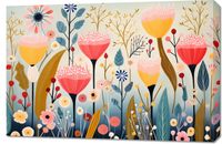 Obraz z serii abstrakcja zatytułowany Ogród Marzeń to urokliwa kompozycja, która przyciąga wzrok żywą paletą barw i abstrakcyjnym przedstawieniem natury. Każda kwiatowa forma jest tu celebracją różnorodności i piękna, od wyrafinowanych, wysmukłych pędów po pełne uroku, rozłożyste płatki. Subtelne detale, takie jak kropki na liściach czy delikatne linie na płatkach, dodają dziełu głębi i tekstury. Ta bujna, kwitnąca łąka jest wizją natury, która przenosi widza w świat fantazji i spokoju. Idealnie sprawdzi się jako centralny punkt w nowoczesnych przestrzeniach mieszkalnych, w pokojach relaksu, a także w przestrzeniach komercyjnych, takich jak spa, salony piękności lub poczekalnie, gdzie wprowadzi atmosferę spokoju i harmonii.