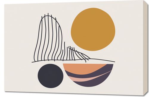 Obraz z serii boho zatytułowany Pełnia Ekspresji, to dzieło sztuki o prostej, ale wyrazistej estetyce. Praca łączy w sobie geometryczne kształty i linię, co daje wyrazistą kompozycję. Kontrastujące barwy: ciemny granat, ciepła pomarańcza, i beż tworzą spójną i zachęcającą do refleksji całość. Idealnie wpasuje się w nowoczesne, minimalistyczne lub mid-century modern wnętrza, przyciągając wzrok i stanowiąc wyrazisty akcent dekoracyjny. Bez wątpienia, jest to obraz , który może stać się centralnym punktem w przestrzeni, łącząc w sobie zarówno prostotę, jak i głębię.