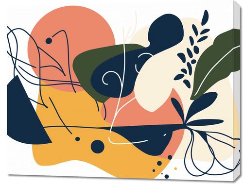 Obraz z serii minimalistyczne zatytułowany Dynamika Wizji. Grafika prezentuje żywą kompozycję abstrakcyjnych kształtów i linii, które tworzą energiczny, ale harmonijny obraz. Kolorystyka oscyluje wokół ciepłych tonów pomarańczu, żółci i bieli, z akcentami głębokiej zieleni, co nadaje pracy witalność i świeżość. Idealnie sprawdzi się jako ożywczy element w przestrzeniach minimalistycznych, takich jak nowoczesne biura, kreatywne studia, czy też domowe atelier. Może stanowić też centralny punkt w pomieszczeniach o stonowanej kolorystyce, przynosząc energię i ciepło do wnętrza. Wprowadzi dynamizm do każdej przestrzeni, zachowując przy tym poczucie elegancji i współczesnego designu.