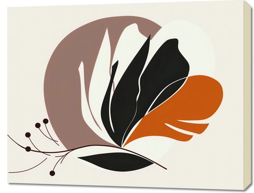 Plakat z serii minimalistyczne zatytułowany Elegancja Roślinna. Grafika ta to abstrakcyjna interpretacja roślinności, przedstawiająca stylizowane liście i kwiaty w spokojnej palecie barw - głębokiej czerni, ciepłej terakoty oraz miękkich beżów. Zarysy liści są wyraźne, a ich formy przypominają naturalny ruch, co nadaje plakatowi życie i delikatność.Ten obraz doskonale odnajdzie się w eleganckich i uporządkowanych wnętrzach, które cenią sobie czystość formy i neutralną kolorystykę. Idealnie nadaje się do przestrzeni takich jak salony, recepcje hotelowe lub prywatne gabinety, gdzie może stanowić główny punkt artystyczny, jednocześnie wprowadzając element spokoju.