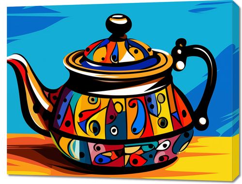 Obraz z serii pop art zatytułowany Może Herbatki?. Ta żywa i kolorowa ilustracja przedstawia czajnik w stylu pop-art, z wzorami przypominającymi prace modernistycznych malarzy. Barwna, geometryczna dekoracja czajnika, zestawiona z dynamicznym, niebieskim tłem, sprawia, że jest on nie tylko przedmiotem użytkowym, ale także dziełem sztuki. Kontrastujące kolory i wyraźne linie tworzą poczucie ruchu i energii. Obraz ten doda życia i charakteru każdej kuchni czy jadalni, inspirowanej sztuką i designem, będąc doskonałym prezentem dla miłośników wyjątkowych akcesoriów kuchennych.