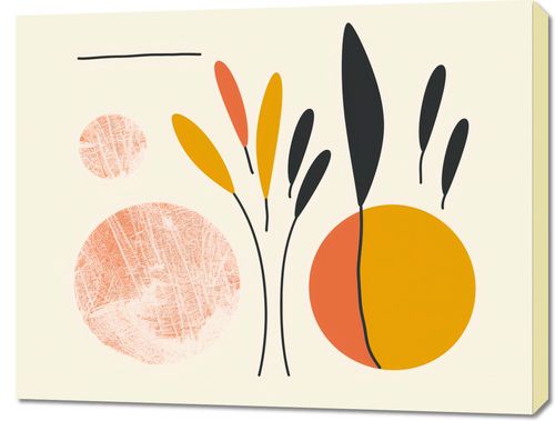 Obraz z serii boho zatytułowany Słoneczne Refleksy.Obraz czerpie z esencji natury i prostoty, przedstawiając stonowane, ale zarazem żywe kształty i linie roślin. Geometryczne kształty w ciepłej palecie barw - od głębokiego pomarańczu do delikatnego żółcienia - są wyróżnione na tle stonowanego beżu, tworząc wrażenie słońca i jego łagodnego światła rozpraszającego się w naturze. Dzieło to będzie pięknie komponować się z jasnymi, przestronnymi wnętrzami, wnosząc do nich poczucie ciepła i optymizmu. Idealnie nadaje się do dekoracji ściennej w salonach, jadalniach lub przestrzeniach oczekujących, gdzie może dodać odrobinę życia bez dominowania nad całością aranżacji. Zapewni lekki, ale wyrazisty akcent, który może inspirować i przynieść radość każdego dnia.