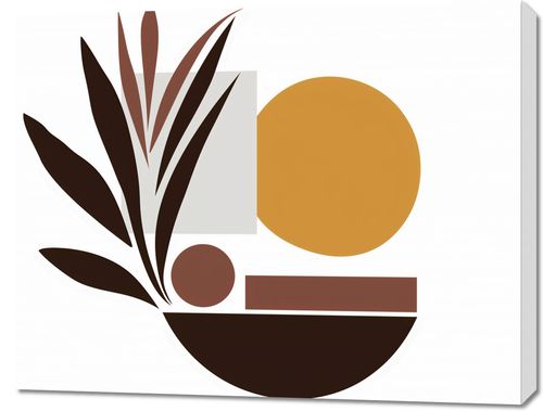 Plakat z serii minimalistyczne zatytułowany Stylizacja Roślin. Prezentuje on stylizowaną kompozycję roślinnych elementów i geometrycznych kształtów, wykorzystując ciepłą paletę brązów, beżów i głęboką ochrę. Proste formy tworzą spokojną, ale wyraźną grafikę, która wprowadza poczucie równowagi i spokoju. Ten obraz doskonale nada się do wnętrz w stylu mid-century modern, skandynawskich lub innych minimalistycznych przestrzeni, gdzie natura jest kluczowym elementem dekoracyjnym. Jego ziemiste barwy mogą dodać ciepła i naturalnego charakteru do każdego pomieszczenia, od salonu po spokojny kącik czytelniczy.