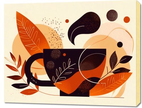 Obraz z serii minimalistyczne zatytułowany Wachlarz Ciepła. Ta kompozycja charakteryzuje się bogatymi, ciepłymi barwami jesieni, łącząc brązy, pomarańcze i czernie z delikatnymi liśćmi i abstrakcyjnymi kształtami, co razem tworzy dynamiczną, ale harmonijną całość.Ten obraz będzie idealnym dodatkiem do przestrzeni, które chcą wnieść trochę ciepła i artystycznego charakteru do swojego wnętrza. Jego ziemiste barwy i wzory mogą przyciągnąć oko w salonie, jadalni, czy współczesnej sypialni, wnioskując poczucie komfortu i naturalnego piękna.