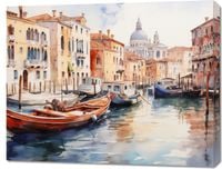 Obraz z serii pejzaże zatytułowany Wenecka Impresja, przedstawia malowniczą scenę kanałów Wenecji. Styl przypominający akwarelę, z miękkimi pociągnięciami i pastelowymi refleksami na wodzie, uchwycił zarówno spokój, jak i żywą atmosferę tego zabytkowego miasta. Łodzie i gondole są cicho przywiązane do nabrzeża, a w tle wznosi się charakterystyczna sylwetka bazyliki. Ten obraz przyciąga uwagę swoją grą światła i koloru, sugerując historie i tajemnice tkwiące w sercu Wenecji. Idealnie sprawdzi się jako element dekoracyjny w przestrzeniach, które pragną przywołać elegancję i historyczną głębię, takich jak salony, studia, biura, a nawet restauracje, które chcą dodać odrobinę włoskiego charakteru do swojego wnętrza.