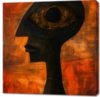 Obraz z serii abstrakcja zatytułowany Głęboki Wgląd przedstawia enigmatyczną sylwetkę o ludzkiej formie z dominującym, przeskalowanym okiem w miejscu głowy, wpatrującym się w widza z niezwykłą intensywnością. Tło obrazu jest abstrakcyjne, z bogatymi pociągnięciami pędzla w ciepłych odcieniach czerwieni i pomarańczy, sugerujące płomienne otoczenie lub burzliwe emocje. Sylwetka postaci jest zarysowana w głębokim czernią, co kontrastuje z jaskrawym tłem, a tekstura przypominająca sieć w obrębie oka może symbolizować skomplikowaną sieć ludzkich doświadczeń i percepcji. Dzieło to może wywoływać rozważania na temat ludzkiej świadomości i głębszego znaczenia bycia obserwatorem. Ten obraz będzie pasował do przestrzeni, które cenią głęboką myśl i filozoficzne dyskusje, takich jak biblioteki, studia artystyczne lub prywatne gabinety.