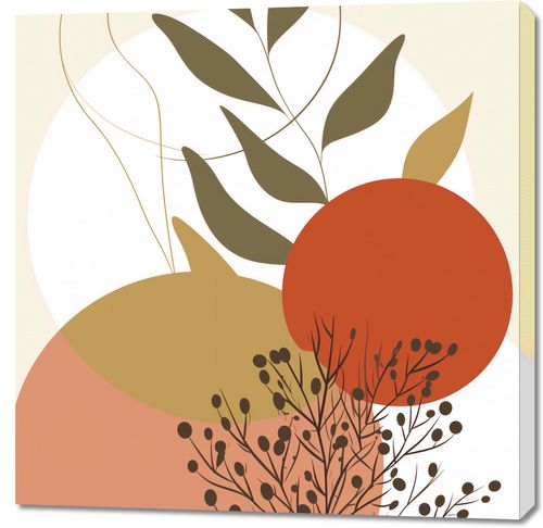 Obraz z serii minimalistyczne zatytułowany Impresja Jesieni.Grafika ta jest dynamiczna i wyważona, z pogłębioną paletą kolorów nawiązującą do jesiennego sezonu. Użyte odcienie czerwieni, pomarańczy i beżu, wsparte głęboką zielenią, wprowadzają uczucie ciepła i spokoju. Delikatne linie i formy przypominają o płynącym czasie i zmienności natury. Obraz ten mógłby być doskonałym akcentem w pomieszczeniach o neutralnym wystroju, wprowadzając element sezonowej zmiany i podkreślając naturalną elegancję przestrzeni.