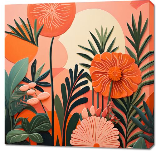Obraz z serii natura zatytułowany Koralowy Ogród. Zachwycające, koralowe kwiaty wyrastają na pierwszy plan, podkreślane delikatnymi białymi liniami tworzącymi ich unikalne wzory. Tło w odcieniach pastelowego różu i kremu dodaje kompozycji głębi i ciepła. Złożoność i różnorodność roślin w obrazie dodaje mu nuty ekstrawagancji i wyjątkowości. Świetnie sprawdzi się w modnych kawiarniach, butikach z odzieżą damską oraz w przestrzeniach spa o relaksującym charakterze.