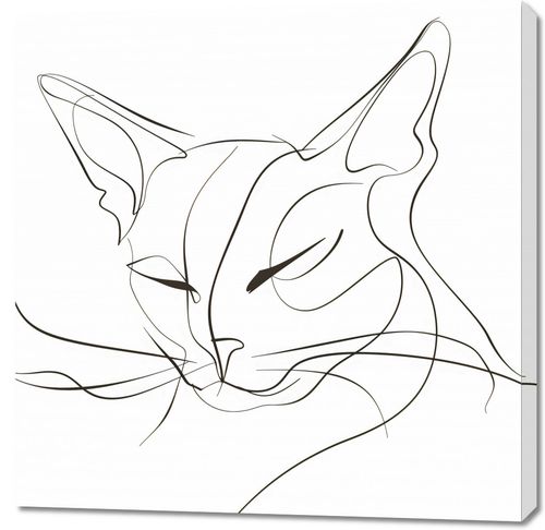 Plakat z serii wnętrza zatytułowany Linijny Kot. Prezentuje minimalistyczny, jednoliniowy rysunek kota. Sylwetka zwierzęcia została zredukowana do kilku płynnych linii, które z gracją oddają kształt głowy, uszu i rysy twarzy, w tym oczy i nos. Styl ten jest znany z tego, że w elegancki sposób uchwyci esencję swojego przedmiotu przy minimalnym użyciu detali. Tło obrazu jest czyste i jasne, co pozwala zarysom kota stać się dominującym elementem. Ten rodzaj sztuki idealnie nadawałby się do nowoczesnego wnętrza, które ceni sobie elegancję i prostotę, i może przyciągać wzrok jako subtelny, ale wyrafinowany element dekoracyjny.
