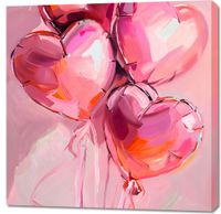 Obraz z serii wnętrza zatytułowany Miłość w Powietrzu przedstawia bukiet balonów w kształcie serc, wykonanych w żywiołowym stylu malarskim z widocznymi pociągnięciami pędzla, co nadaje dziełu teksturę i dynamikę. Barwy przechodzą od intensywnych różów po delikatne pastelowe odcienie, co tworzy romantyczną i wesołą atmosferę. Tło w jasnym, spokojnym kolorze różu idealnie komponuje się z głównymi elementami, podkreślając ich formę i kolorystykę. Obraz ten idealnie nadawałby się do wnętrz o lekkim i pogodnym charakterze, takich jak pokoje dziecięce, salony, czy też jako dekoracja na uroczystości, np. walentynki czy ślub.