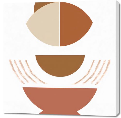 Obraz z serii boho zatytułowany Pastelowa Hipnoza. Łączy prostotę kształtów geometrycznych z subtelnością pastelowych barw, tworząc obraz o niemal hipnotycznym uporządkowaniu. W centrum kompozycji znajduje się dualistyczny kształt, który balansuje między symetrią a asymetrią, otoczony przez półkola i linie, przywołujące na myśl delikatne promienie słońca. Paleta kolorystyczna ogranicza się do ciepłych odcieni beżu, brązu i rdzawego różu, co dodaje dziełu wyrafinowanej subtelności. Doskonale odnajdzie się jako centralny punkt w jasnych, przestronnych wnętrzach, gdzie może stać się tłem dla głębokich refleksji, lub jako element dekoracyjny w minimalistycznie urządzonych pomieszczeniach, dodając im ciepła i elegancji.