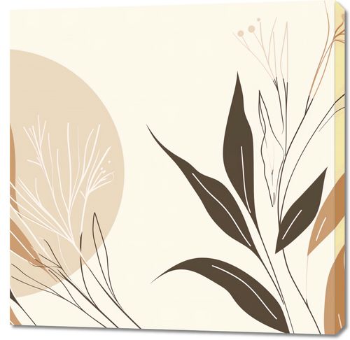 Plakat z serii minimalistyczne zatytułowany Splątana Wizja. Dzieło to przedstawia stylizowane rośliny w spokojnych, ziemiście ciepłych kolorach, tworząc poczucie spokoju i harmonii. Delikatne linie i płynne kształty przywodzą na myśl spokojny dzień na łonie natury. Plakat ma wyrafinowany i jednocześnie prosty charakter, który łączy w sobie elementy natury z minimalistycznym designem.Ten obraz będzie idealnym wyborem dla wnętrz, w których panuje atmosfera relaksu i spokoju, takich jak joga lub spa. Jego łagodne barwy i naturystyczne motywy są idealne do przestrzeni, gdzie priorytetem jest spokój umysłu i harmonia z otaczającym środowiskiem, takich jak salon, sypialnia, czy miejsce do medytacji.