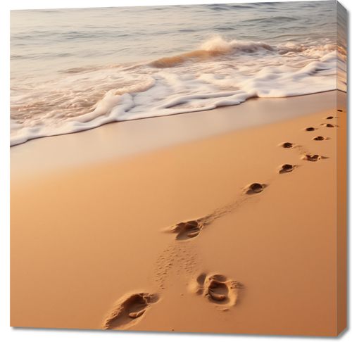Obraz z serii pejzaże zatytułowany Szepty Fal przedstawia obraz, który zaprasza widza do kontemplacji i refleksji. Delikatne ślady stóp wskazują na cichą obecność, a przytłumione szumy fal i miękki piasek podkreślają uczucie spokoju. Rozmyte kolory zachodu słońca, które malują niebo na niemal nierzeczywiste odcienie pomarańczy i błękitu, wydają się być synonimem spokojnego zakończenia dnia. Ta praca idealnie wkomponuje się w estetykę współczesnych salonów lub pokoi wypoczynkowych, które cenią sobie minimalizm i naturę, a także będzie znakomitym wyborem dla przestrzeni wellness i spa, gdzie harmonia i spokój są kluczowymi elementami.