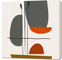 Obraz z serii boho zatytułowany Współgranie to odważne połączenie kształtów i kolorów, gdzie każdy element współgra z innymi, tworząc zbalansowaną całość. Zachowując estetykę mid-century modern, dzieło łączy w sobie ciepłe odcienie brązu, ochry oraz głęboką czerwień z neutralnymi szarościami i czernią. Abstrakcyjne formy przypominające naczynia i rośliny nakładają się na siebie, tworząc iluzję głębi i perspektywy. Delikatne linie nadają kompozycji strukturę i porządek. Ten obraz będzie wyróżniającym się dodatkiem do każdego nowoczesnego wnętrza, idealnie komponując się w przestrzeniach, gdzie dominuje prostota i spokój, jak minimalistyczne salony, stylowe biura czy ciche kąciki do czytania.