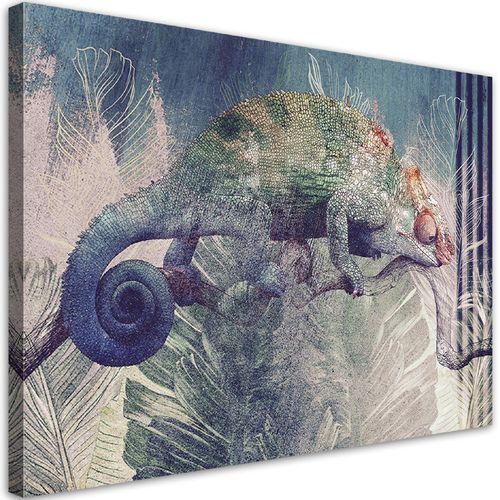 Odkryj niezwykłą magię z naszym obrazem na płótnie "Kameleon na gałęzi" o wymiarach 90x60 cm! Ta wyjątkowa dekoracja ścienna to idealne połączenie pasji do sztuki i nowoczesnej technologii druku, które odmieni Twoje wnętrze. Każdy detal tego obrazu został niesamowicie odwzorowany dzięki zastosowaniu najnowszej technologii druku UV Gel FLX finish. Efekt? Obraz jest nie tylko piękny, ale także odporny na ścieranie, zarysowania i zabrudzenia, co sprawia, że będzie cieszył Twoje oczy przez długie lata!