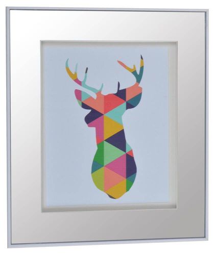 Obrazek z kolorowym reniferem w lustrzanej ramie.