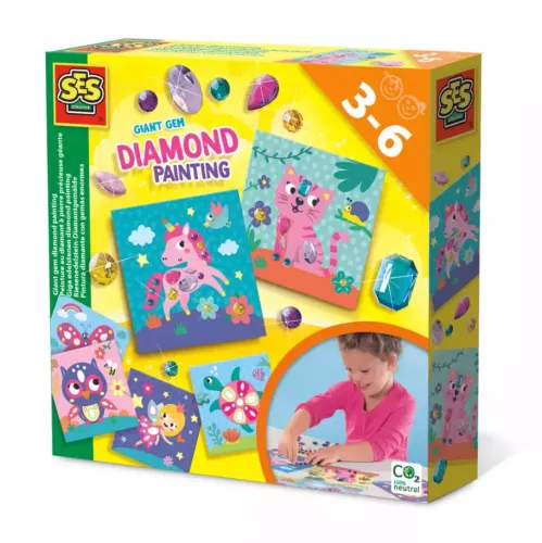 Malowanie z diamentami teraz także dla najmłodszych! Dzięki temu niesamowitemu zestawowi do malowania z dołączonymi diamentami możesz tworzyć piękne obrazy. Wyjątkowo duże kamienie są samoprzylepne i można je przykleić do sześciu jasnych kart. Czy najpierw stworzysz olśniewającego żółwia czy magicznego jednorożca?