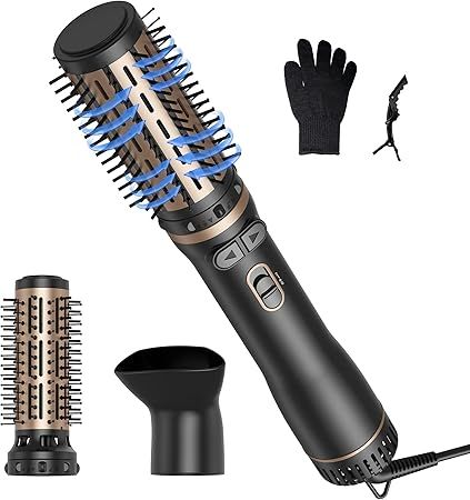 W zestawie znajdują się trzy akcesoria: szczotka o średnicy 38 mm, idealna do uzyskiwania puszystych loków, oraz 50 mm, która doskonale sprawdzi się przy długich włosach, tworząc subtelne falowane stylizacje. Dodatkowo, dysza koncentratora pozwala na szybkie suszenie oraz precyzyjne kształtowanie fryzury.