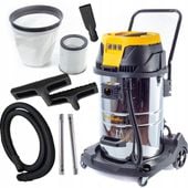 Wykonany z grubości 3 mm stali nierdzewnej wodoodpornej, zbiornik o pojemności 100 l wytrzymuje intensywne prace na sucho i mokro. Zabezpieczenie pływakowe chroni silnik przed wodą, a potrójny system filtracji – w tym filtr HEPA, ostateczny silnikowy i worek na pył – zapewnia niemal 100% skuteczność w przechwytywaniu drobnych cząstek, takich jak pył gipsowy czy popiół, przedłużając żywotność urządzenia bez kompromisów.