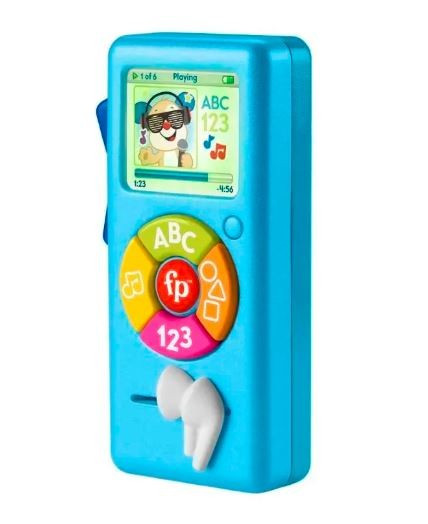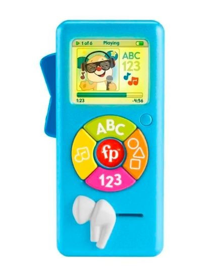Z Odtwarzaczem muzycznym 123 Ucz się i śmiej! od Fisher-Price maluch może zabrać muzyczną zabawę edukacyjną, gdziekolwiek chce. Ta przenośna zabawka wygląda jak odtwarzacz mp3 i ma mnóstwo doskonałej zabawy: podświetlany ekran ze Szczeniaczkiem, piosenki edukacyjne do wspólnego śpiewania w 5 stylach oraz elementy aktywizujące pomagające ćwiczyć zręczność. Twoje dziecko będzie zachwycone, że może Cię naśladować dzięki temu interaktywnemu zabawkowemu odtwarzaczowi muzycznemu. Naciśnij przycisk globusa, aby wybrać język: polski, węgierski, czeski, słowacki lub angielski.