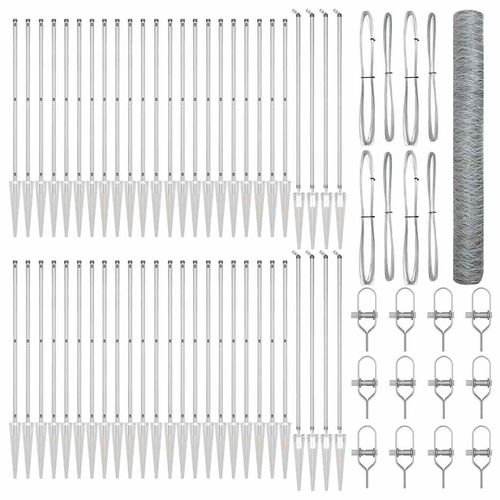 - 1 x rolka ogrodzeniowa, 44 x słupek, 8 x słupek kątowy, 44 x szpilka, 8 x szpilka kątowa, 44 x plastikowa końcówka, 132 x plastikowy podpórka do drutu napięciowego, 8 x plastikowa końcówka słupka, 8 x akcesoria do słupka kątowego, 12 x napinacz, 4 x 25 m drut wiążący, 4 x 80 m drut napięciowy