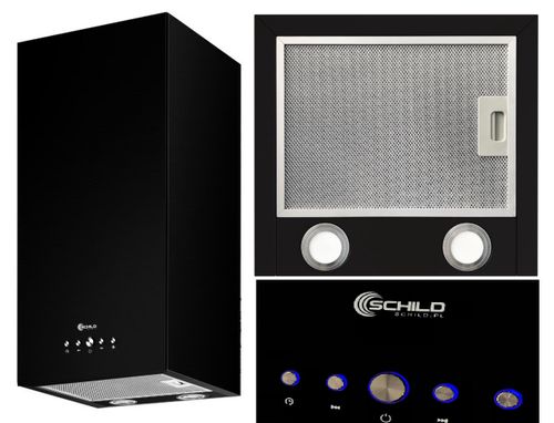 OKAP KUCHENNY SCHILD 401B ŚCIENNY 200W, 574m3/h CZARNY PROSTOKĄT/ KWADRAT PRZYŚCIENNY KOMINOWY LED