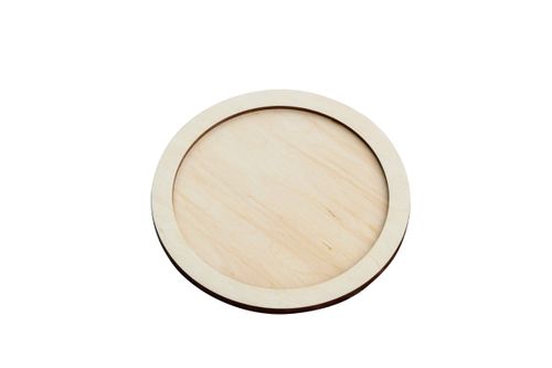 Okrągła, drewniana tacka wycięta ploterem laserowym ze sklejki drewnianej. Stanowi doskonałą bazę dla różnego rodzaju kreatywnych prac.
