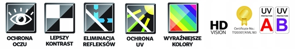 Okulary wyposażone są w filtr UV blokujący dwa zakresy promieniowania ultrafioletowego.