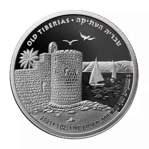 Old Tiberias 1 uncja Srebra 2021 Prooflike to 2 moneta z serii "Ancient Cities of The Holy land". Tyberiada, jedno z najstarszych i najświętszych miast Izraela. Położona na zachodnim brzegu Jeziora Galilejskiego w północnym Izraelu i założona około 20 roku n.e. przez Heroda Antypasa, syna Heroda Wielkiego.