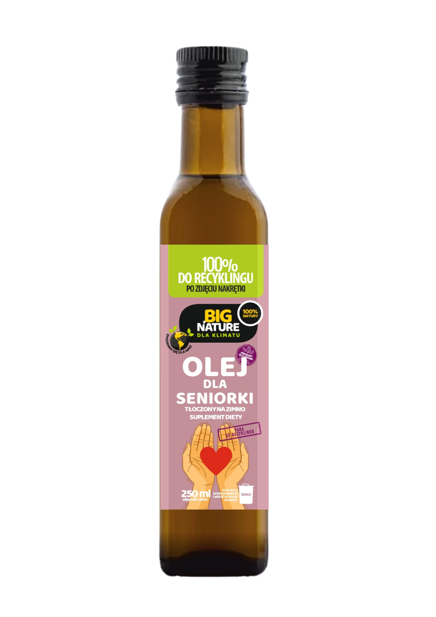 Opis: Opakowanie zawiera 250ml oleju dla seniorki tłoczonego na zimno