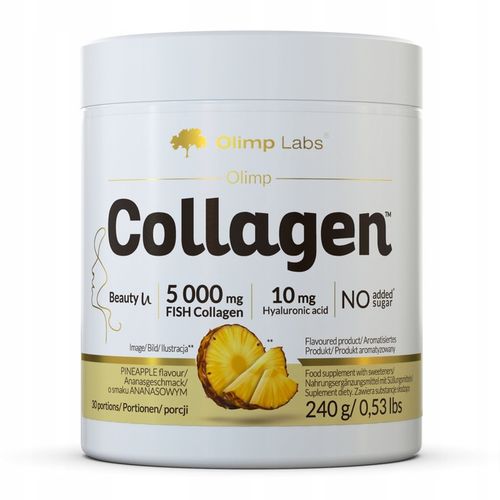 OLIMP COLLAGEN to wyjątkowy suplement diety zawierający wysokiej jakości kolagen rybi typu I. Każda porcja (8 g) dostarcza aż 5 g łatwo przyswajalnego hydrolizatu kolagenu, który skutecznie odbudowuje skórną macierz zewnątrzkomórkową, przywracając skórze młodzieńczy wygląd.