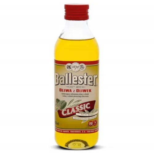 Oliwa z oliwek BALLESTER CLASSIC to kwintesencja śródziemnomorskiego smaku zamknięta w eleganckiej butelce. Delikatny, łagodny aromat, osiągnięty dzięki połączeniu rafinowanej oliwy z oliwek oraz oliwy extra vergine, wprowadza do Twojej kuchni odrobinę słonecznej Hiszpanii. Lekka konsystencja oraz subtelny smak sprawiają, że jest uniwersalnym dodatkiem do każdej potrawy.