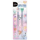 Komplet dwóch ołówków z uroczymi figurkami zwierzątek.
