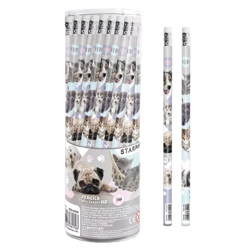 Ołówek z gumką zdobiony grafiką z uroczymi zwierzakami. Wykonanie z dobrych jakościowo materiałów zapewnia komfort rysowania i pisania, a ołówek nie łamie się podczas strugania. 48 sztuk w opakowaniu zbiorczym.