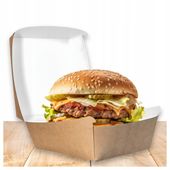 Opakowanie to gwarantuje pełną higienę i trwałość, odporne na tłuszcz i wilgoć dzięki specjalnej powłoce papieru Kraft. Czy to w food trucku, restauracji czy na evencie, te pudełka umożliwiają serwowanie w każdych warunkach, zachowując świeżość i estetykę potraw bez niespodzianek.