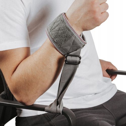 Wykonana z poliestrowego paska z regulowaną klamrą, jest wytrzymała i trwała, zapewnia bezpieczne przywiązanie do ramy łóżka / krzesła. Łatwa regulacja długości zawiesia ogranicza ruchy ciała.