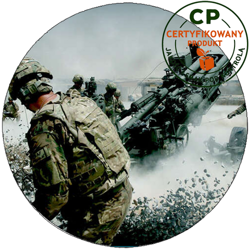 Opłatek na tort wykonany z arkusza jadalnego wydrukowany tuszami jadalnymi nadającymi się do spożycia.