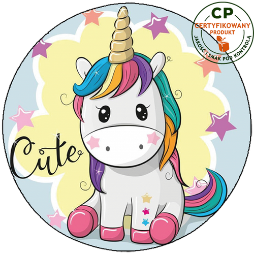 Opłatek na tort wykonany z arkusza jadalnego wydrukowany tuszami jadalnymi nadającymi się do spożycia.
