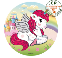 Opłatek na tort wykonany z arkusza jadalnego wydrukowany tuszami jadalnymi nadającymi się do spożycia.