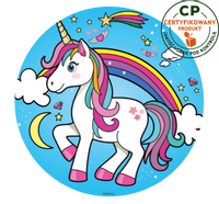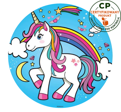 Opłatek na tort wykonany z arkusza jadalnego wydrukowany tuszami jadalnymi nadającymi się do spożycia.