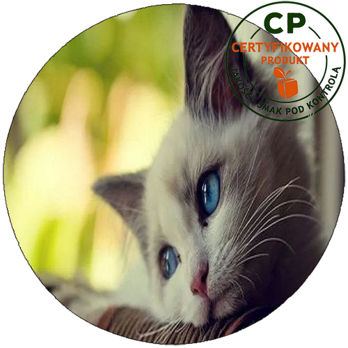 Nasz opłatek na tort Koty posiada wszelkie certyfikaty dopuszczające do obrotu spożywczego, co gwarantuje najwyższą jakość i bezpieczeństwo. Warto zauważyć, że dla uzyskania lepszego efektu graficznego, zalecamy użycie sprayu spożywczego. Aby uniknąć problemów, pamiętaj, aby nakładać opłatek na tort około 2 godziny przed podaniem.