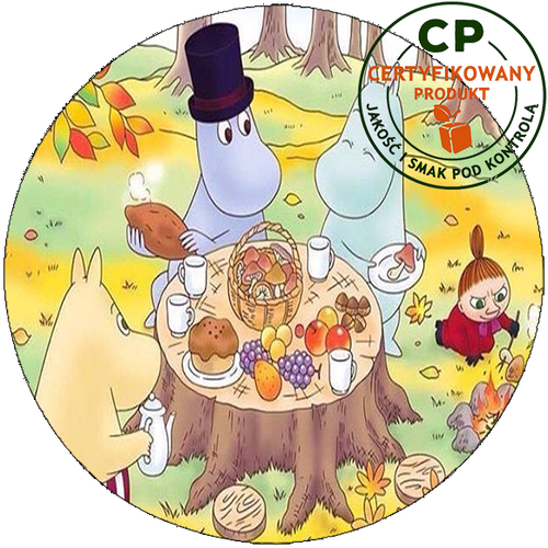 Opłatek na tort wykonany z arkusza jadalnego wydrukowany tuszami jadalnymi nadającymi się do spożycia.