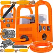 Opryskiwacz został wyposażony w zestaw akcesoriów, które umożliwiają dostosowanie go do specyficznych potrzeb. Lanca z regulowanym strumieniem pozwala na kontrolę zasięgu, długości i rozproszenia strumienia, zapewniając niezrównaną precyzję podczas oprysku. Dodatkowo, dzięki możliwości zespalania różnych dysz dużej wydajności, urządzenie staje się prawdziwym narzędziem wszechstronnym.